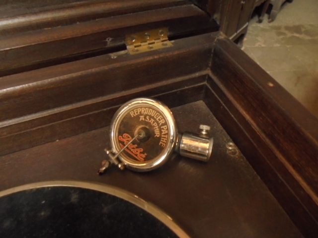 saffier en dient om Pathé saffierplaten te beluisteren.